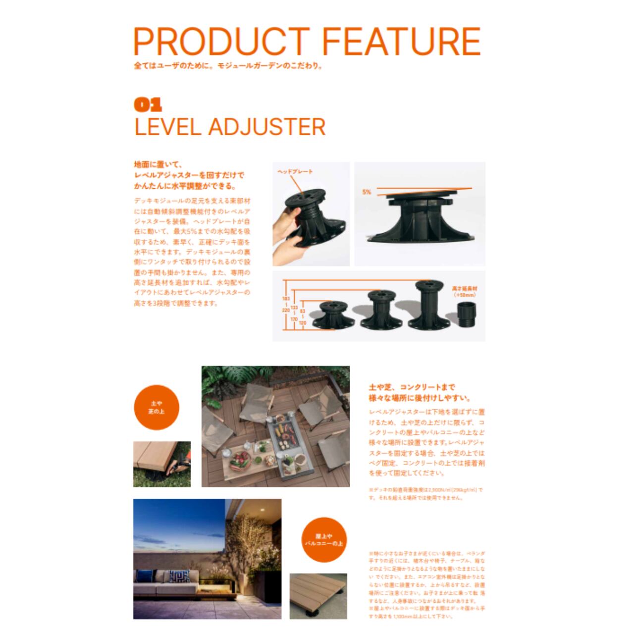 ウッドデッキは、もっと自由に。使い方に合わせて、広さも形も、レイアウトは無限大。持ち運びできる5つのモジュールを組み合わせて、さあ、どんな空間を作りあげよう。