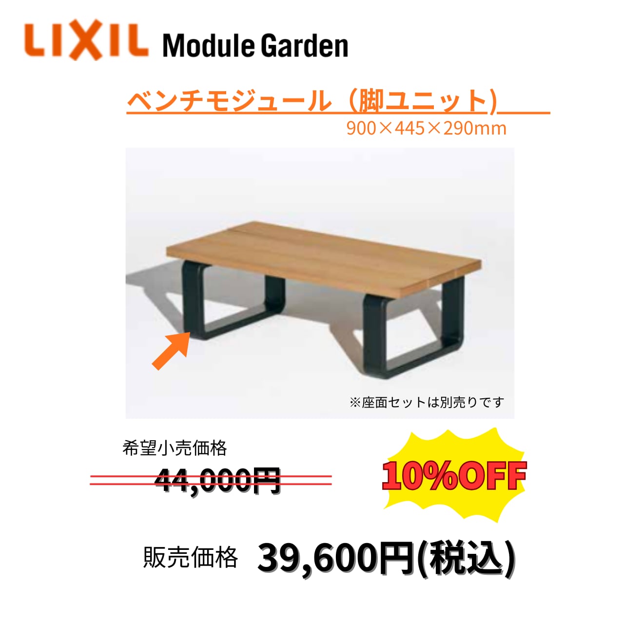 LIXILモジュールガーデン ベンチモジュール(脚ユニット)900×445×290mm ※座面セット別売り